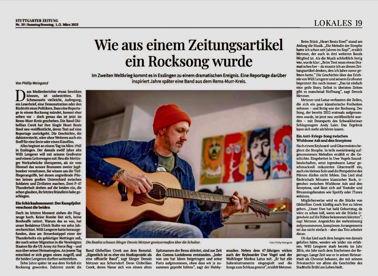 Was für eine Ehre, ein Zeitungsbericht in der StZ über den Ghibellian Creek Song "Heart Beats Steel". Überragend!